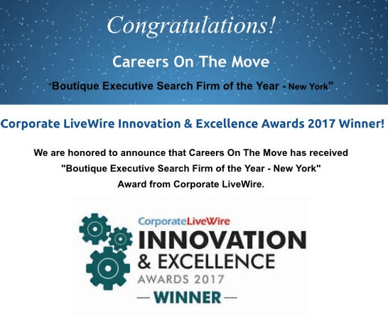 BIG NEWS: Careers On The Move Awarded “Boutique Executive Search Firm of the Year – New York”
